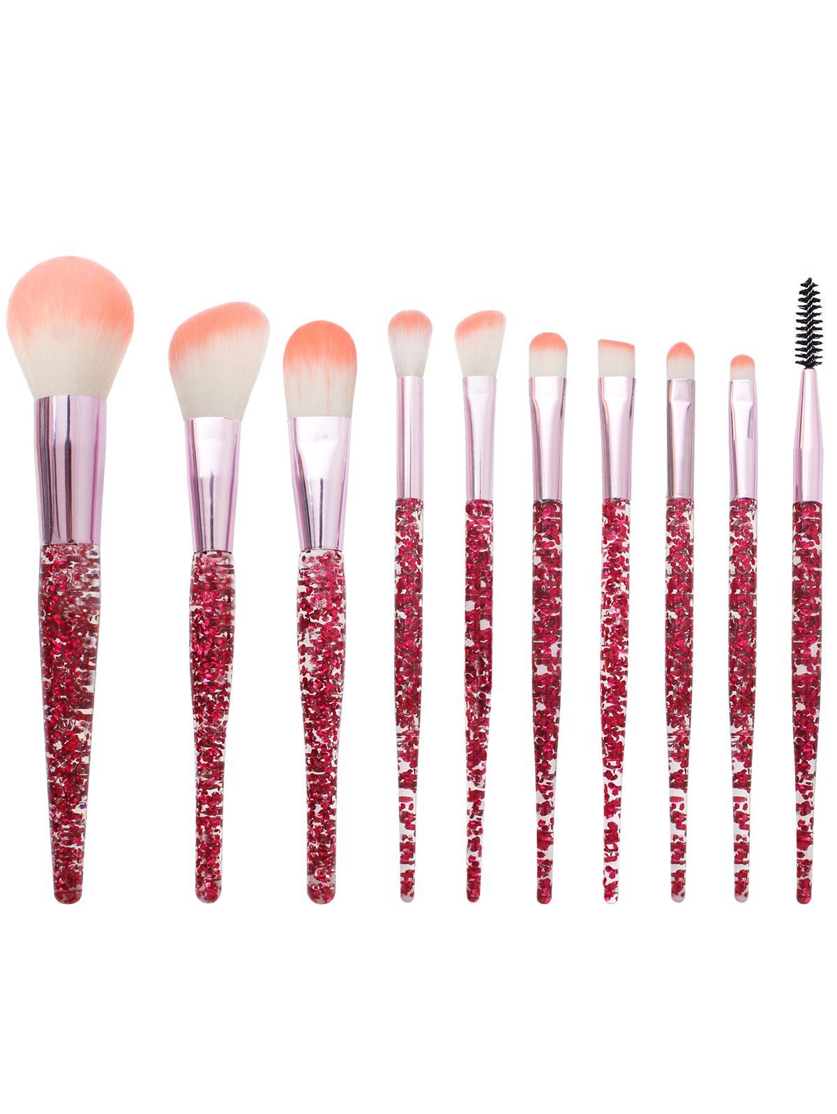 10 Pièces Ensemble de Pinceaux à Maquillage Cosmétiques Super Doux avec Manches Imprimées - Rouge