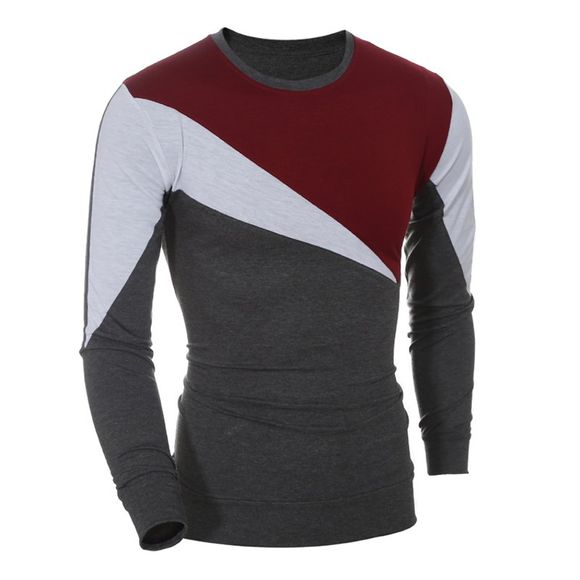 Nouveau 2017 T-Shirt Décontracté en Couleur Contrastante à Manches Longues pour Homme - Rouge XL