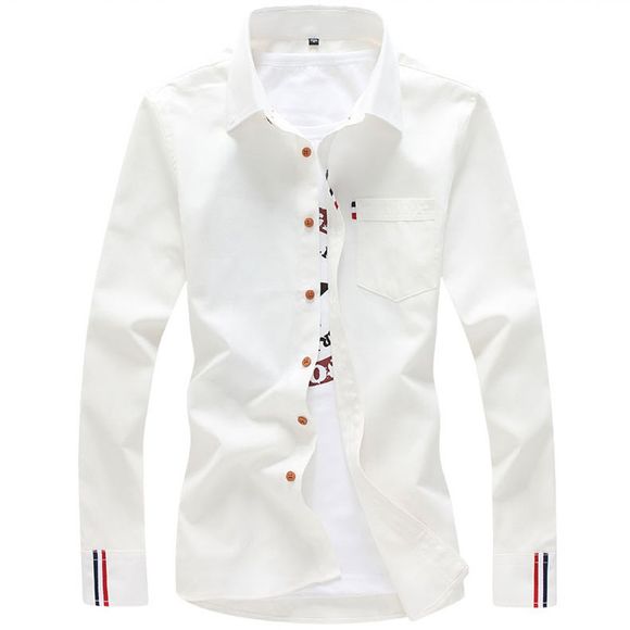 2018 Chemise de couleur unie pour hommes Chemise à manches longues à rayures - Blanc L