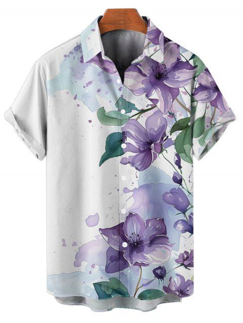 Chemise de Vacances Décontractée Boutonnée Fleurie Plante Imprimées à Manches Courtes