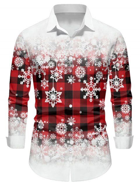 Chemise de Noël Boutonnée Flocon de Neige à Carreaux Imprimé à Manches Longues