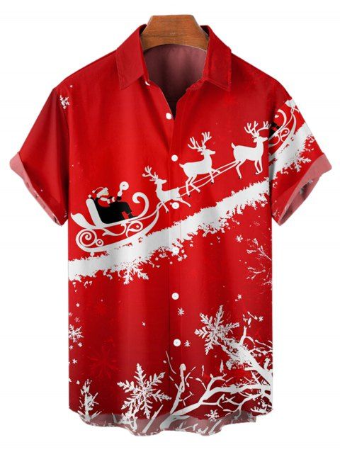 Chemise Boutonnée avec Col Rabattu à Manches Courtes Imprimé Élan et Père Noël