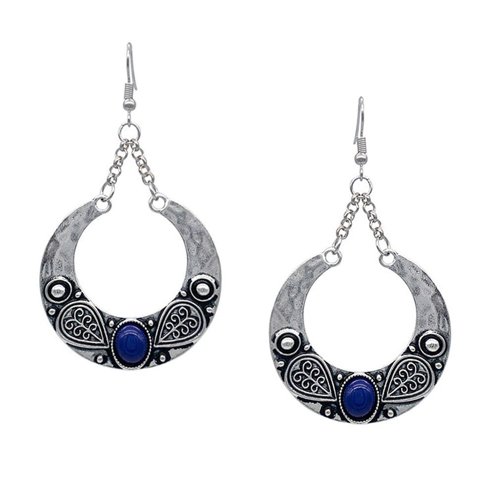 Accessoire argent antique en pierre précieuse artificielle sculptée de Bohême - Bleu