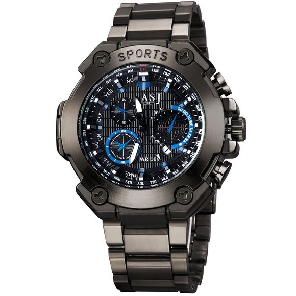 ASJ mode masculine de sport en acier inoxydable calendrier étanche montre à quartz - Bleu