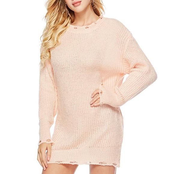 Automne hiver arc en ciel col rond pull pull en vrac en vrac - Rose ONE SIZE
