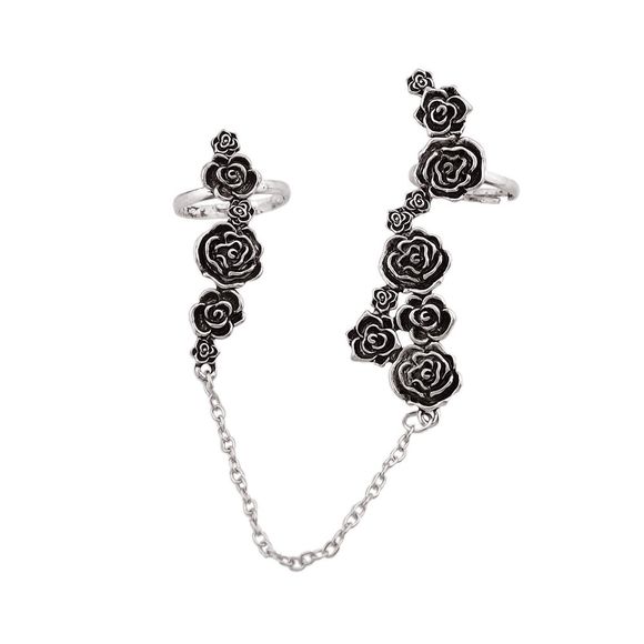 Bague à double fleur rose - Argent RESIZABLE