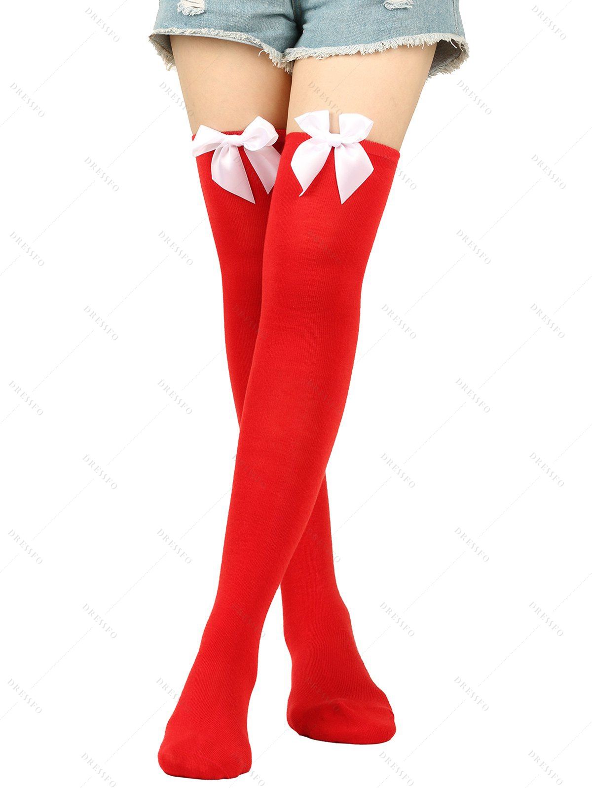 Bas de Noël à nœud papillon, longueur genou - Rouge