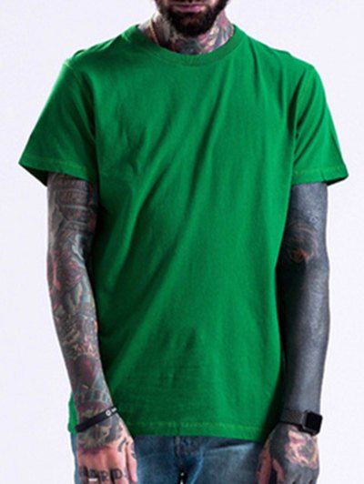 Basic ras du cou à manches courtes T-shirt - Vert M