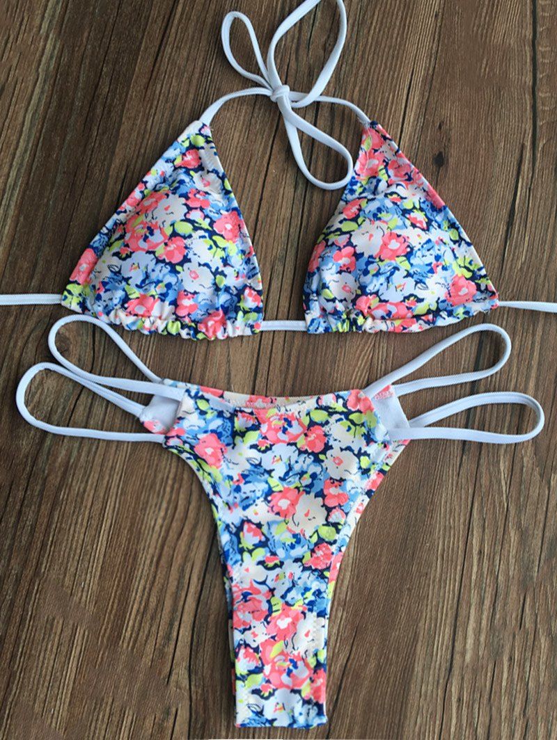 Bikini halter rembourré imprimé fleur minuscule - Floral XL