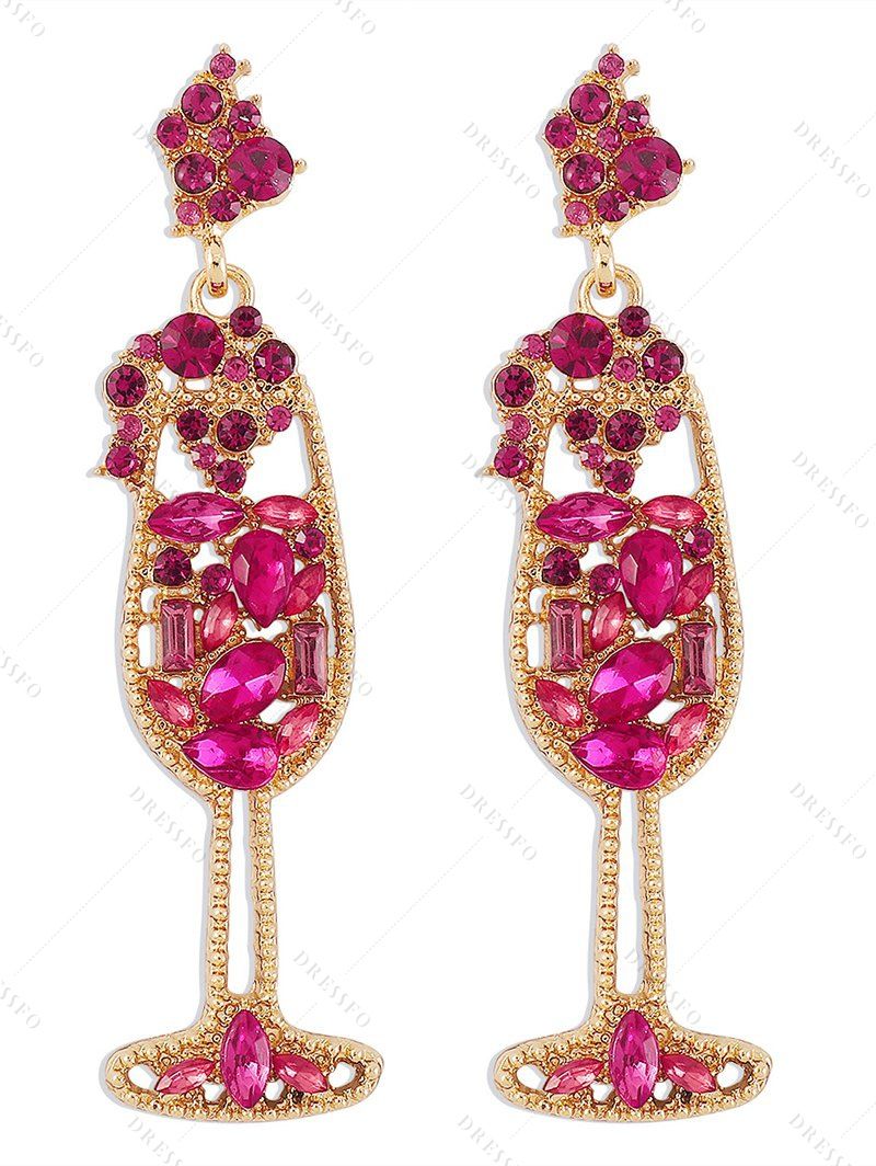 Boucles d'oreilles de soirée en forme de verre à vin avec fausses perles et pierres précieuses