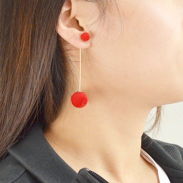 Boucles d'Oreilles Pendantes Petit Boule Pompon - Rouge