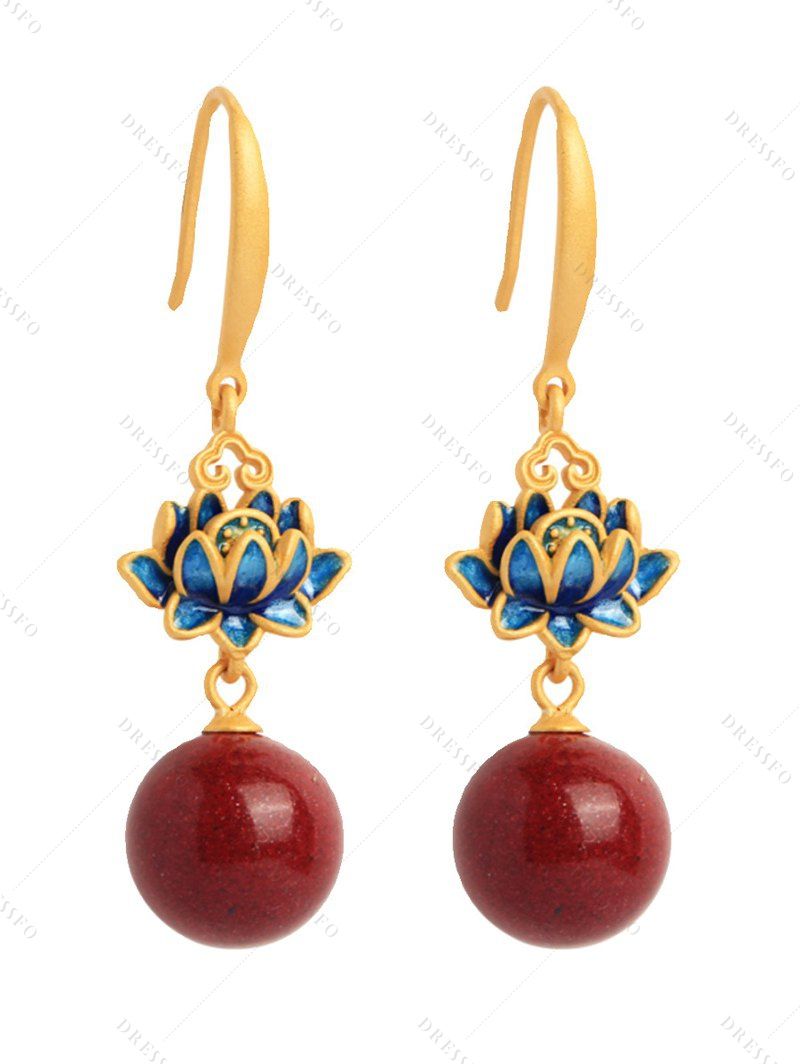 Boucles d'oreilles vintage Lotus Floral Cercle Rétro Pendantes - Rouge