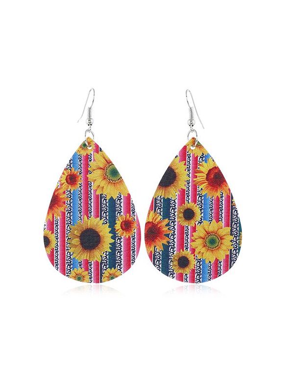 Boucles d'Oreilles Goutte d'Eau Motif de Tournesol en Cuir - multicolor C