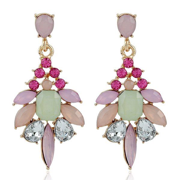 Boucles d'oreilles Gem artificiel strass Dangle géométrique - Rose