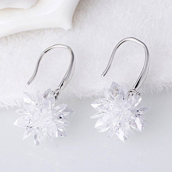Boucles d'Oreilles Crochets en Forme de Fleurs en Cristal Fantaisie - Blanc