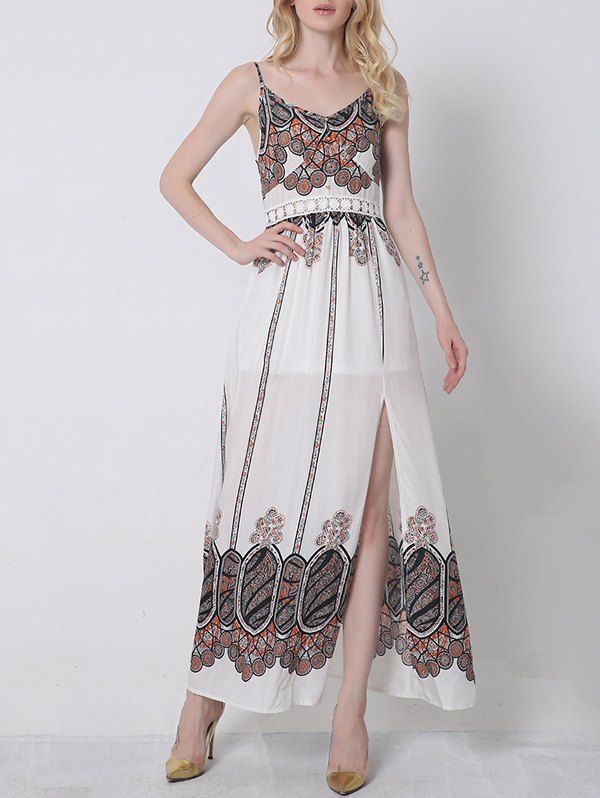 Cami Slit Vintage Printed Maxi Dress - Tangerine 2XL