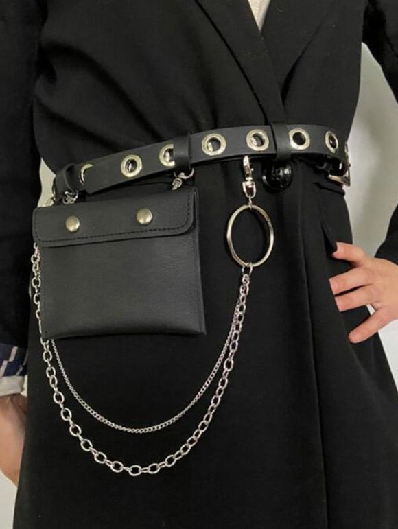 Ceinture Amovible à Chaîne Œillet Style Punk - Noir