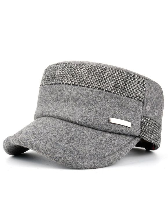 Chapeau Militaire de Haut Plat Réglable Décoré de Barre en Métal - Gris Clair