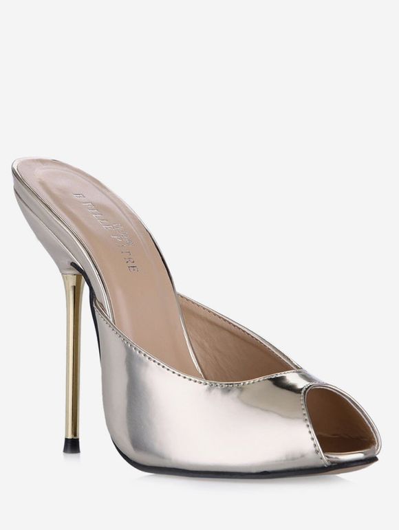 Sandales Bout Ouvert à Talon Aiguille en Cuir Verni - Or EU 37