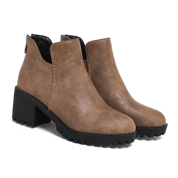 Chaussures pour femmes Bottes à la mode Chunky Talon Bout rond Bottines Zipper - Brun 41