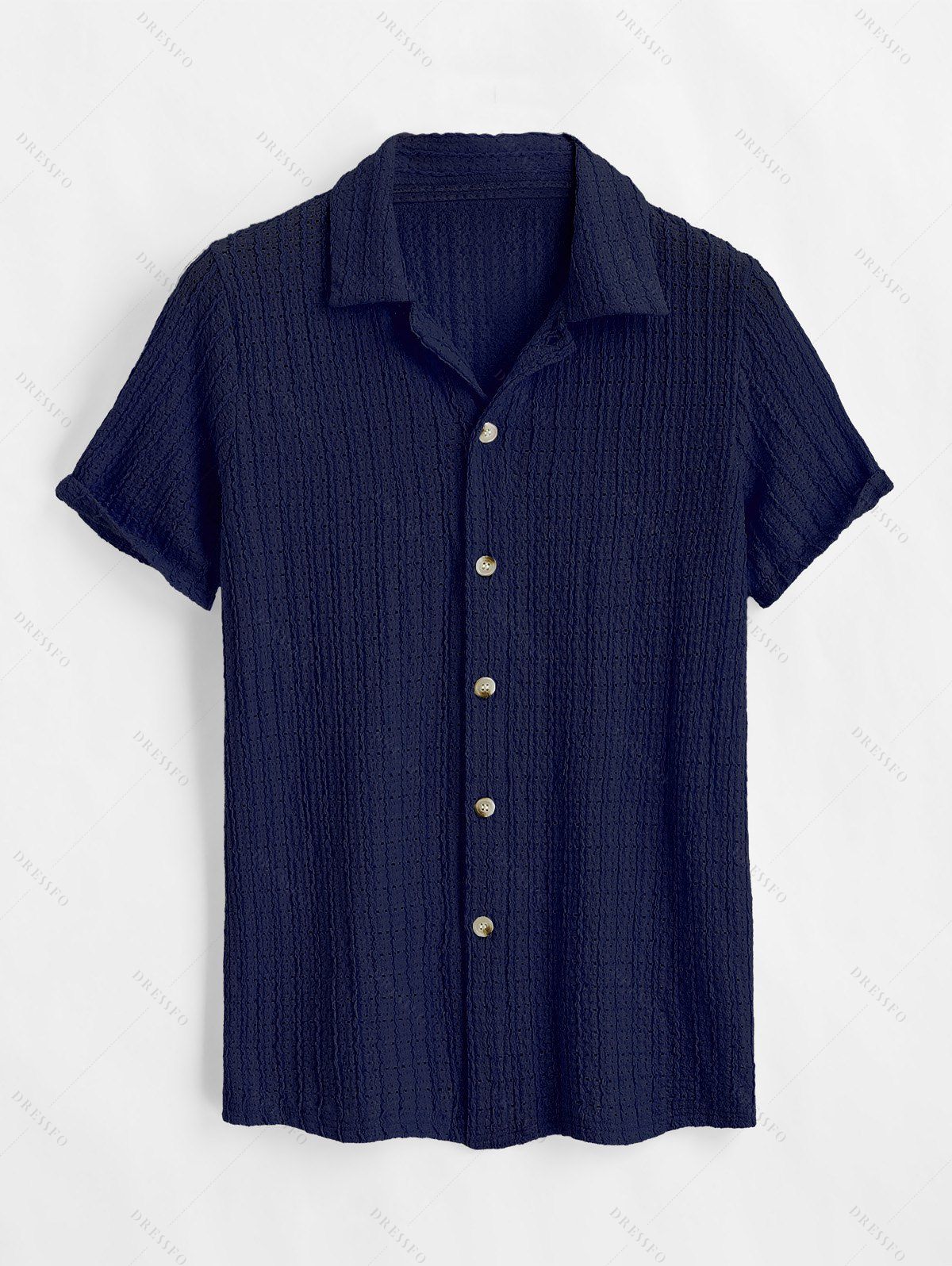 Chemise décontractée pour homme, en maille texturée, couleur unie, à boutons - Bleu profond 2XL