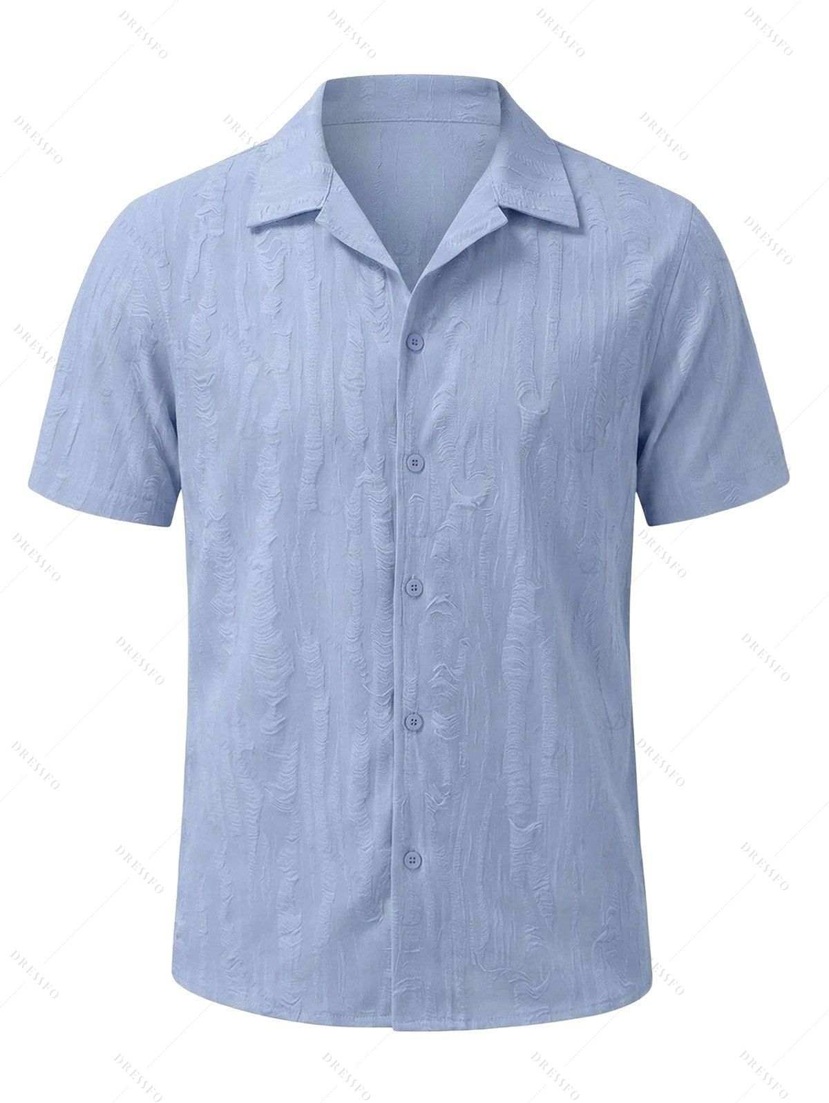 Chemise décontractée pour homme, texture jacquard, couleur unie, boutonnée - Bleu Poudre 3XL