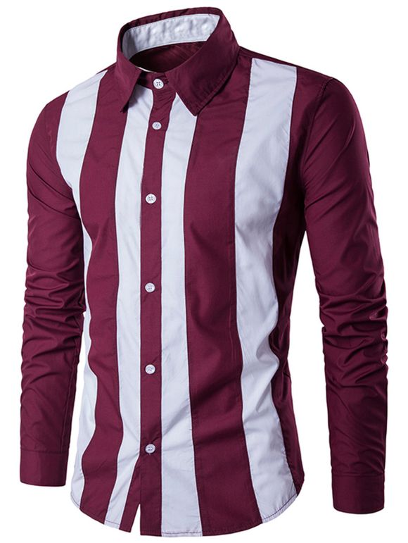 Chemise Décontractée à Rayure Verticale Contrastante - Rouge vineux 3XL