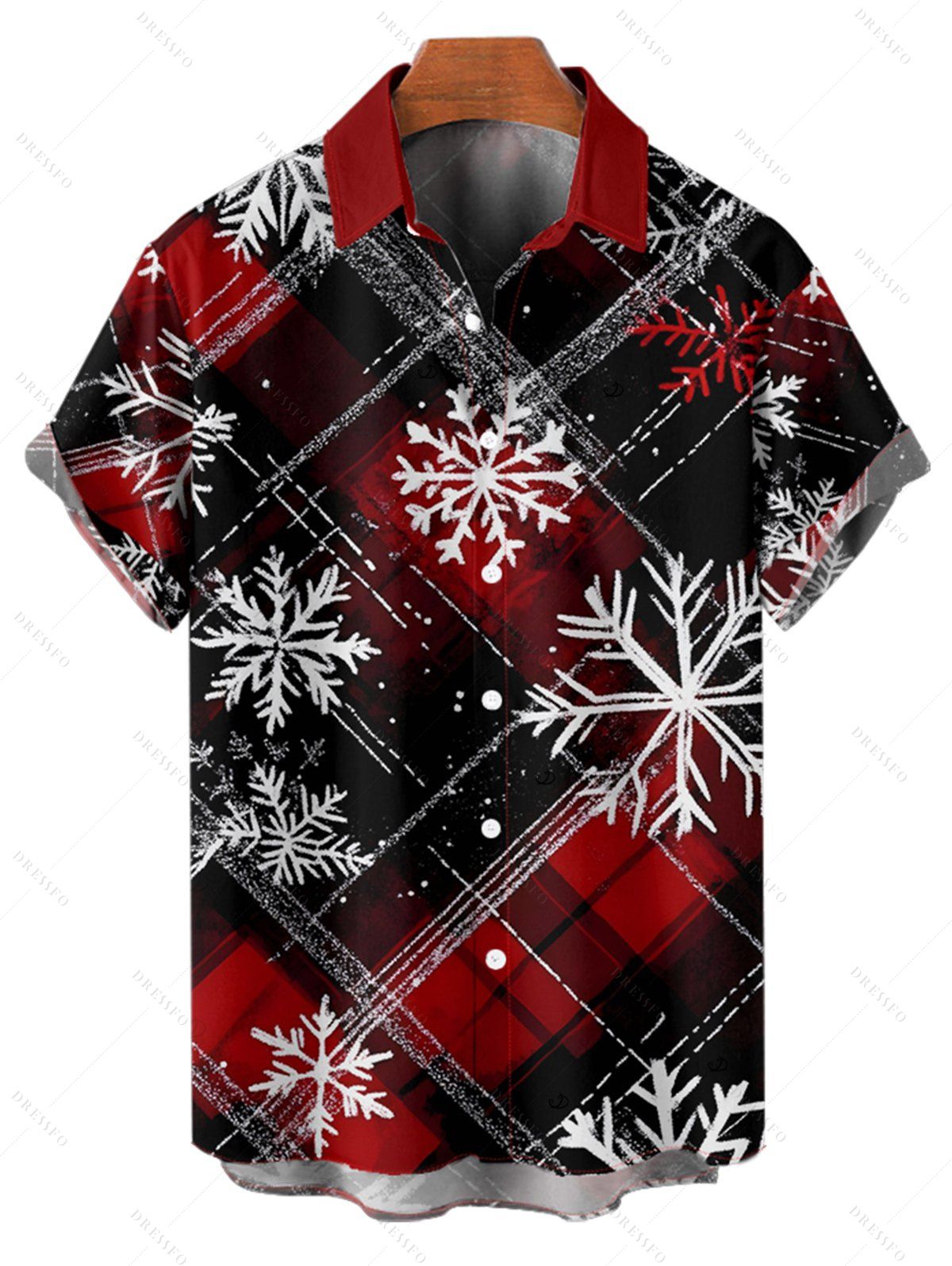 Chemise de Noël à carreaux pour homme, imprimé flocon de neige, boutonnée - Rouge M | US 6 HOT
