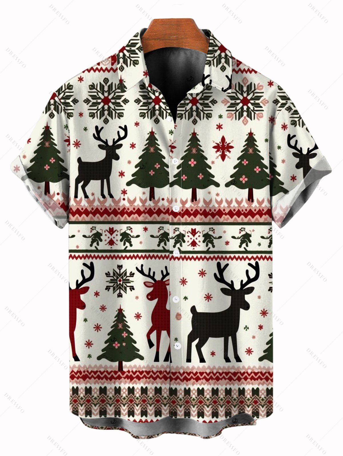 Chemise de Noël pour homme avec motif zigzag, sapin de Noël et flocons de neige.