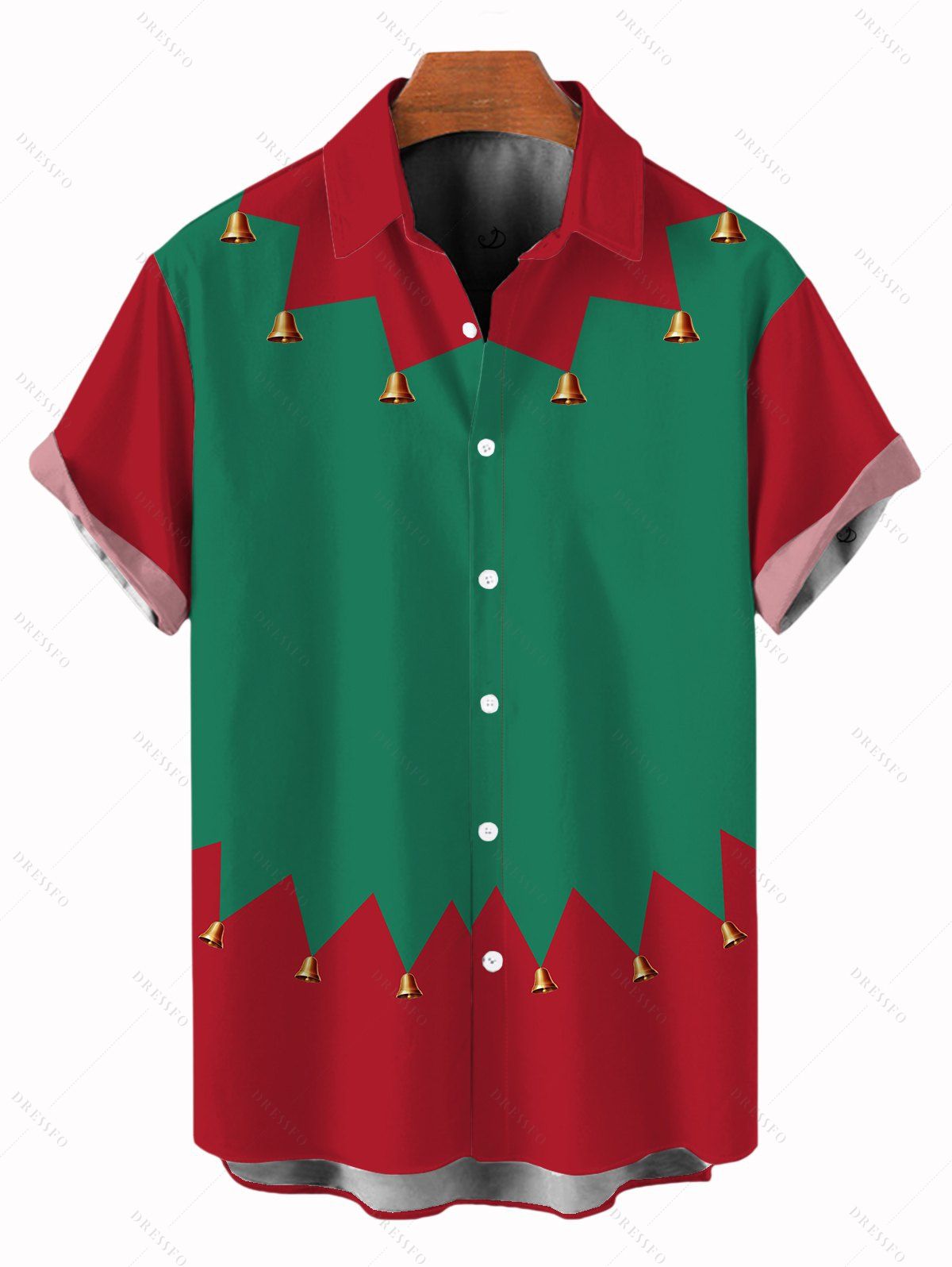 Chemise de Noël pour homme, boutonnée, imprimé géométrique et colorblock, motif cloche