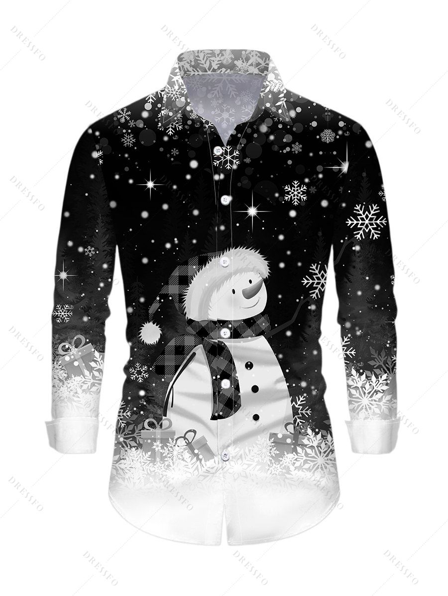 Chemise de Noël pour homme à manches longues, imprimé bonhomme de neige et flocons de neige, colorblock - Noir 5XL