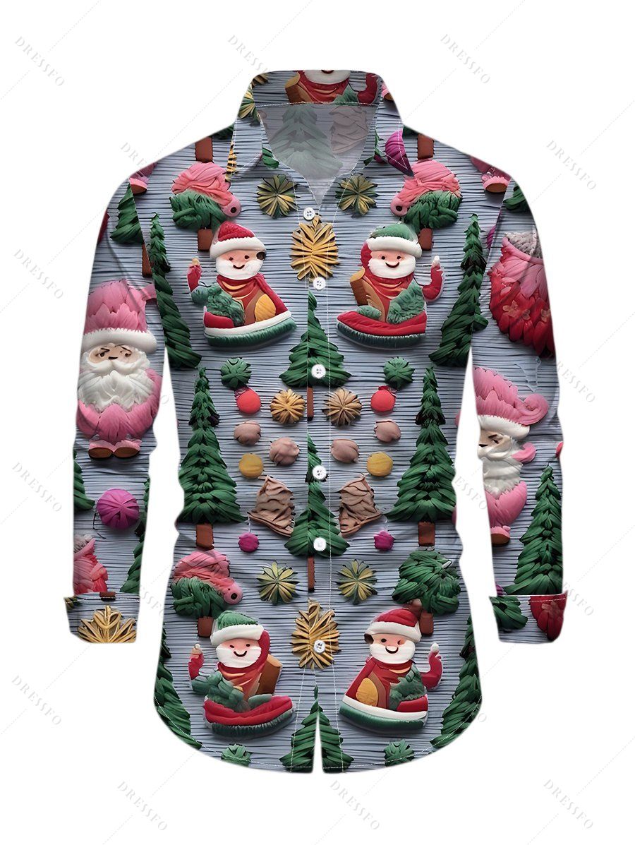 Chemise de Noël pour homme, manches longues, imprimé sapin de Noël et Père Noël