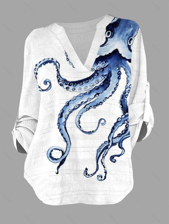 Chemise de vacances à manches retroussées avec imprimé pieuvre - Blanc M | US 6