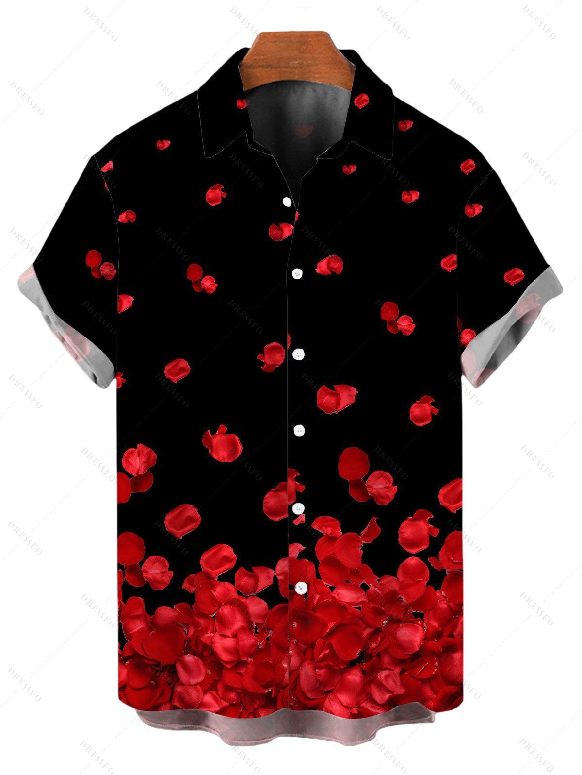 Chemise de vacances pour homme, chemise boutonnée à imprimé pétales de rose - Noir 5XL
