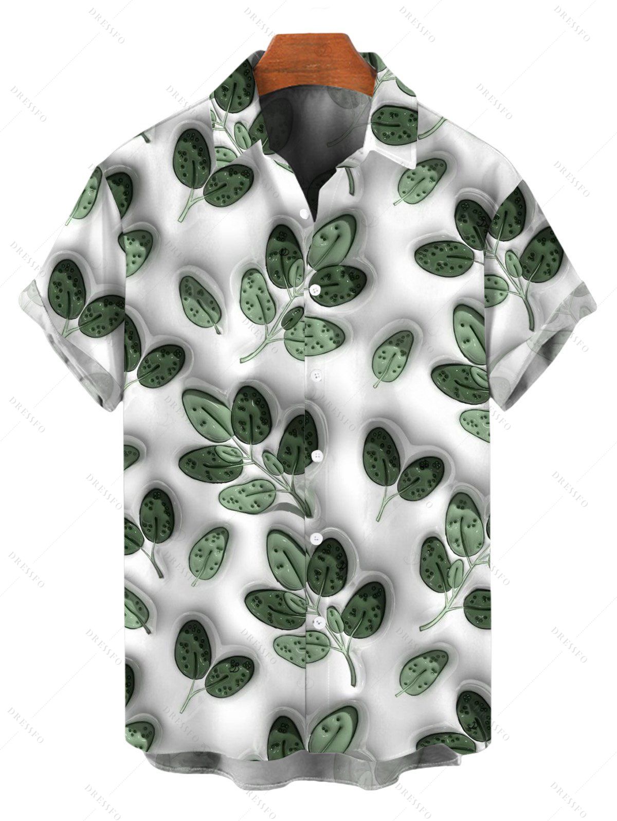 Chemise de vacances pour homme, imprimé botanique de feuilles texturé 3D, chemise boutonnée