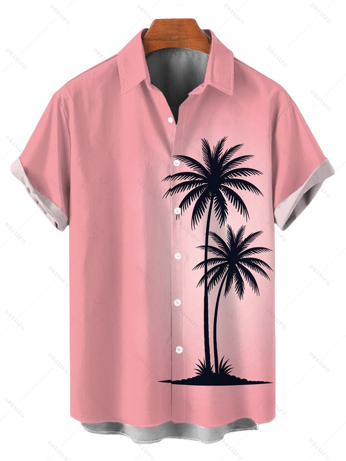 Chemise de vacances pour homme, imprimé cocotier ombré, boutonnée - Rose 5XL