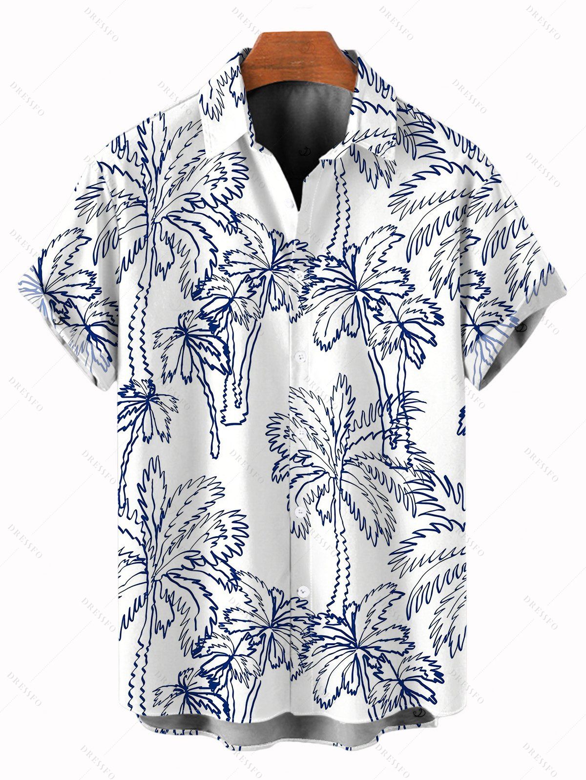 Chemise de vacances pour homme, imprimé de cocotiers, à boutons - Blanc S