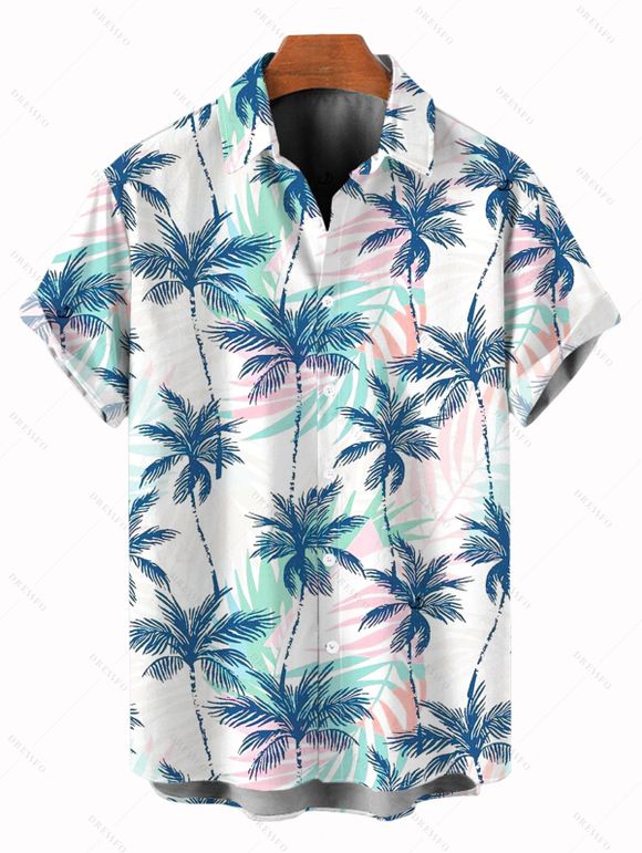 Chemise de vacances pour homme, imprimé feuilles de cocotier, boutonnée