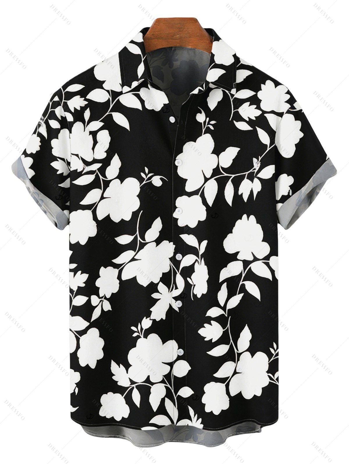 Chemise de vacances pour homme, imprimé floral et silhouette de feuilles, boutonnée - Noir XL