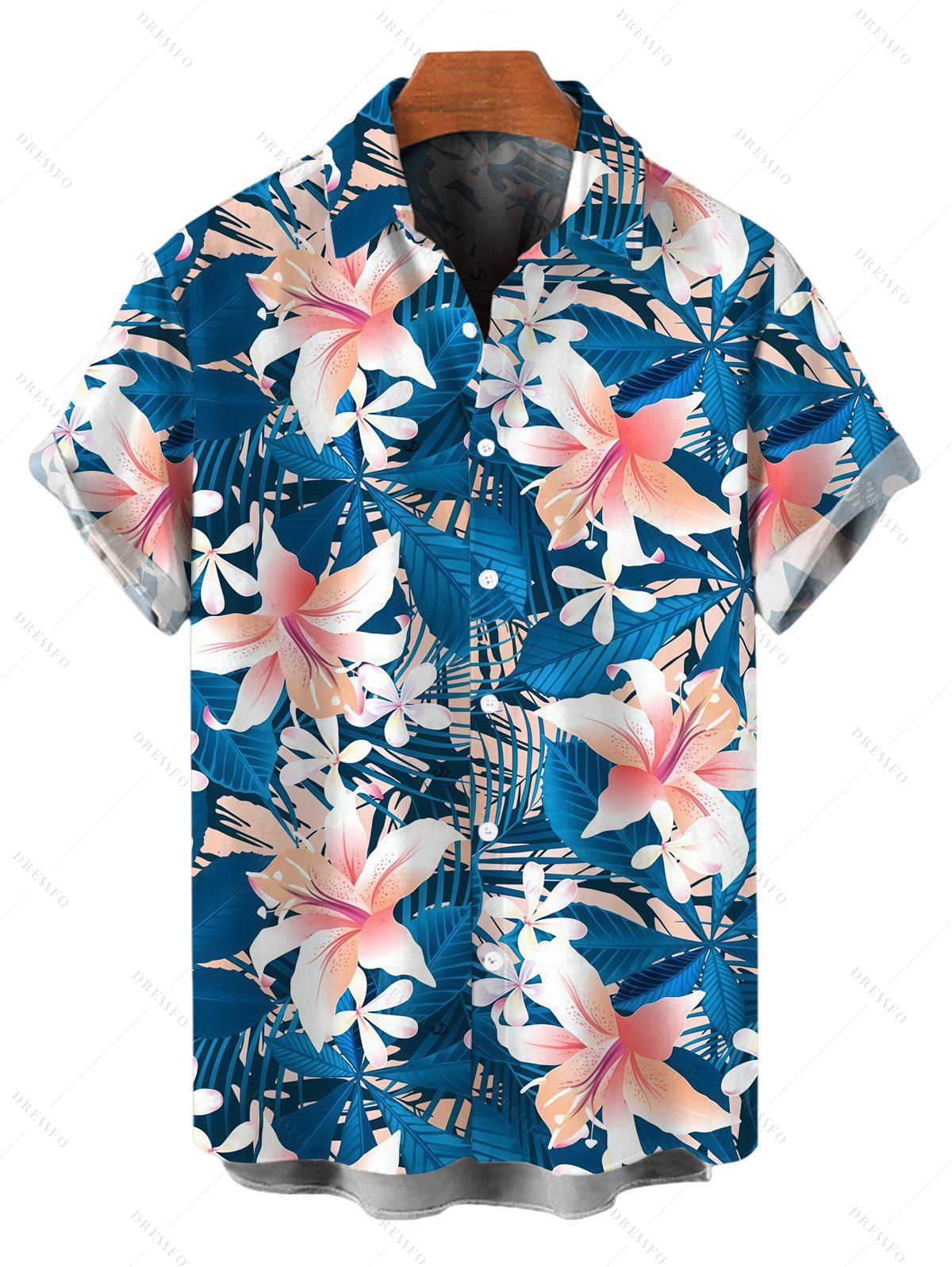 Chemise de vacances pour homme, imprimé floral lys et feuilles, à boutons
