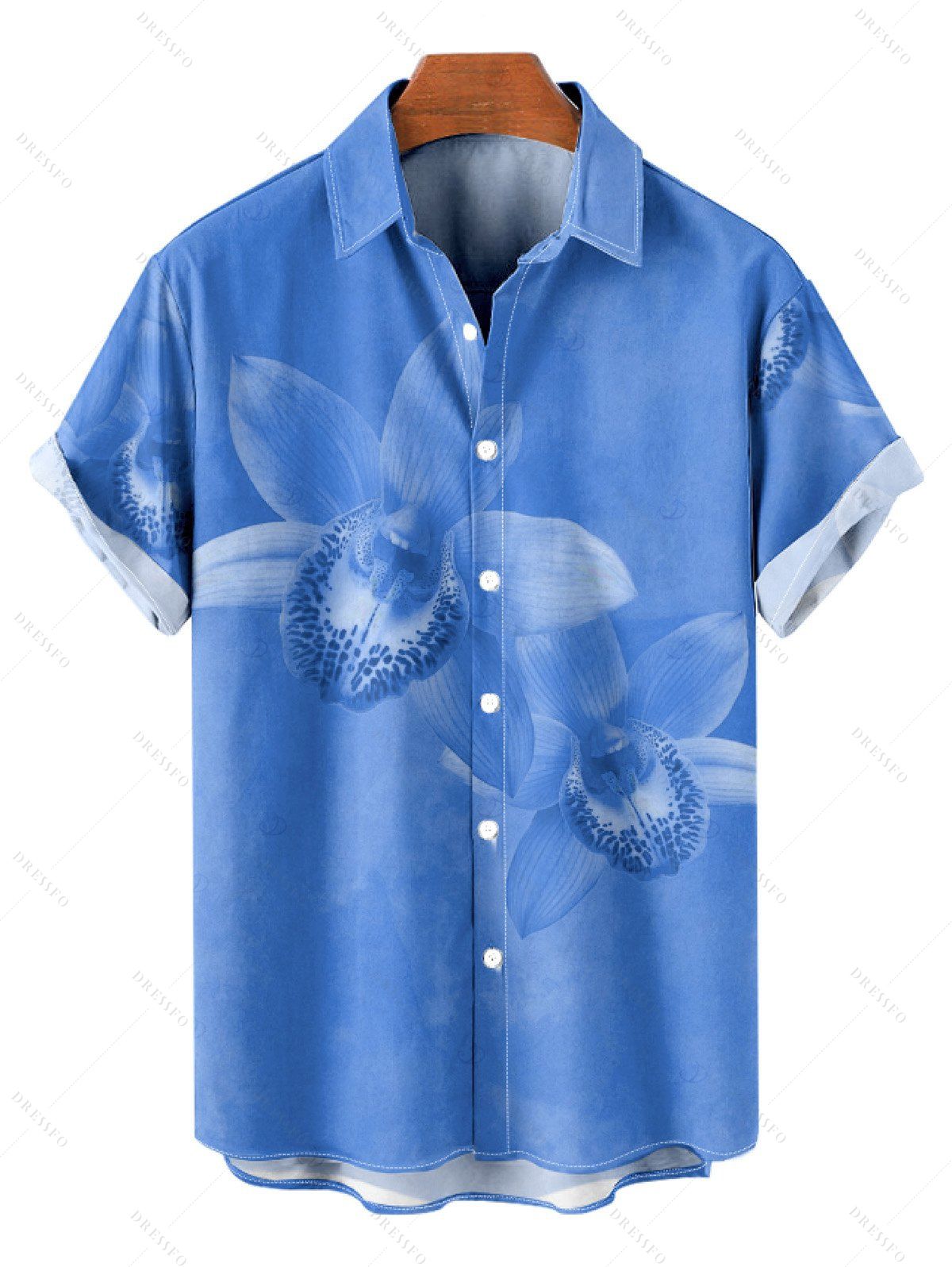 Chemise de vacances pour homme, imprimé floral tropical orchidée, chemise boutonnée - Bleu Ciel M