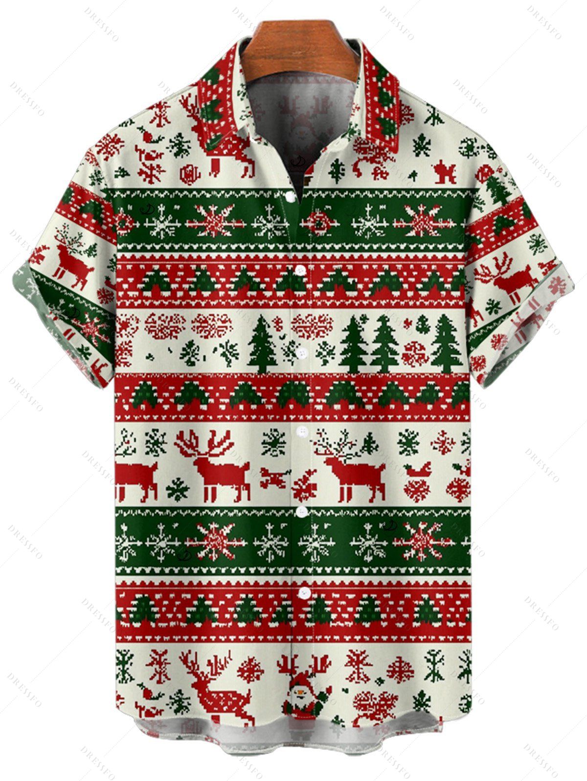Chemise de vacances pour homme, imprimé élan, sapin de Noël, rayé, boutonné