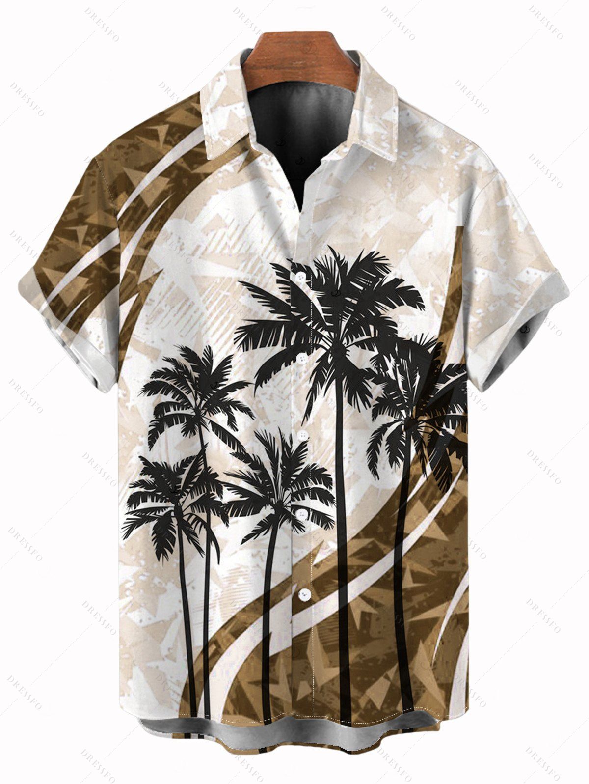 Chemise de vacances pour homme, motif cocotier, colorblock, boutonnée - Brun S