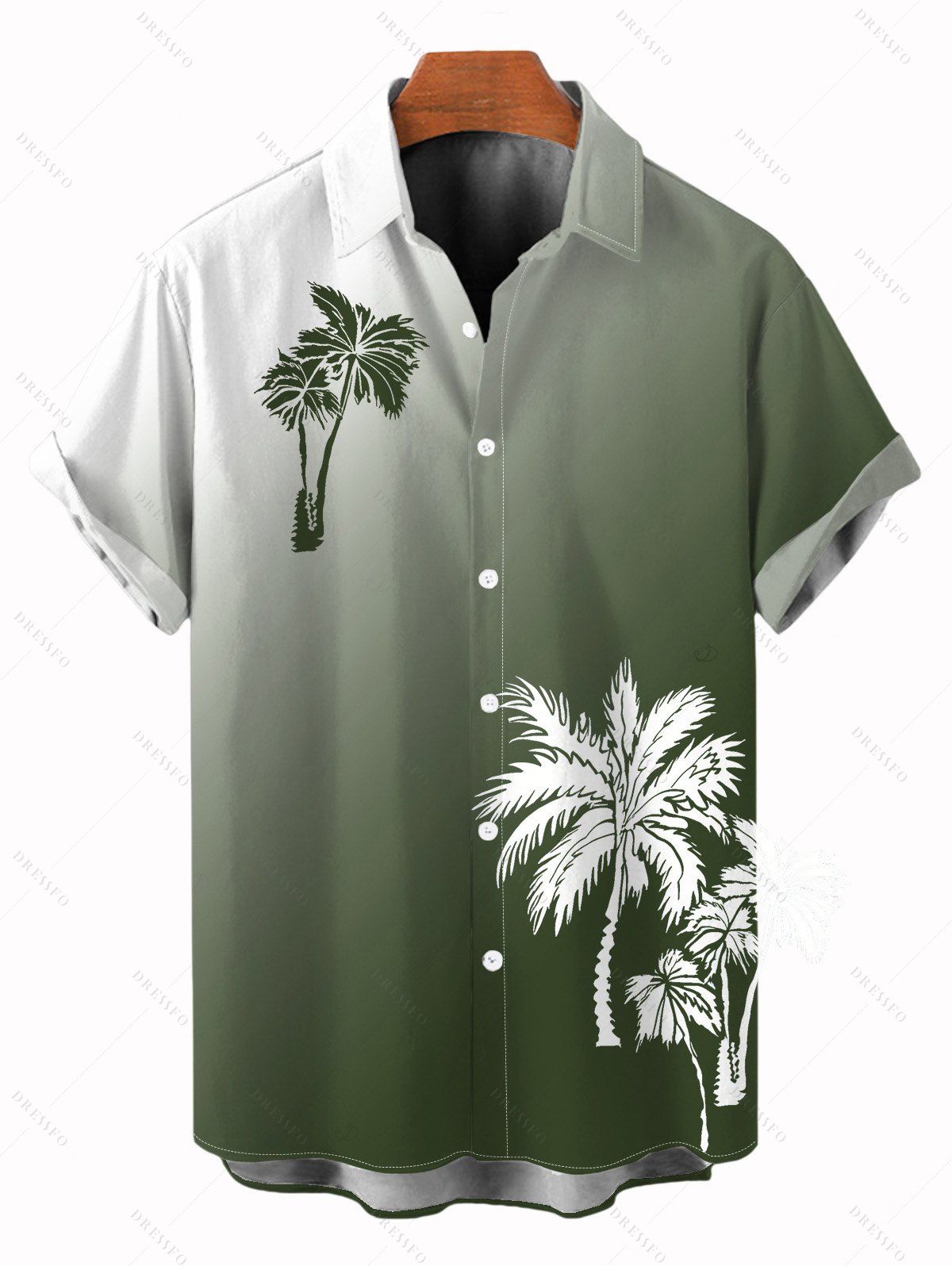 Chemise de vacances pour homme à motif cocotier ombré, boutonnée - Vert Armée S