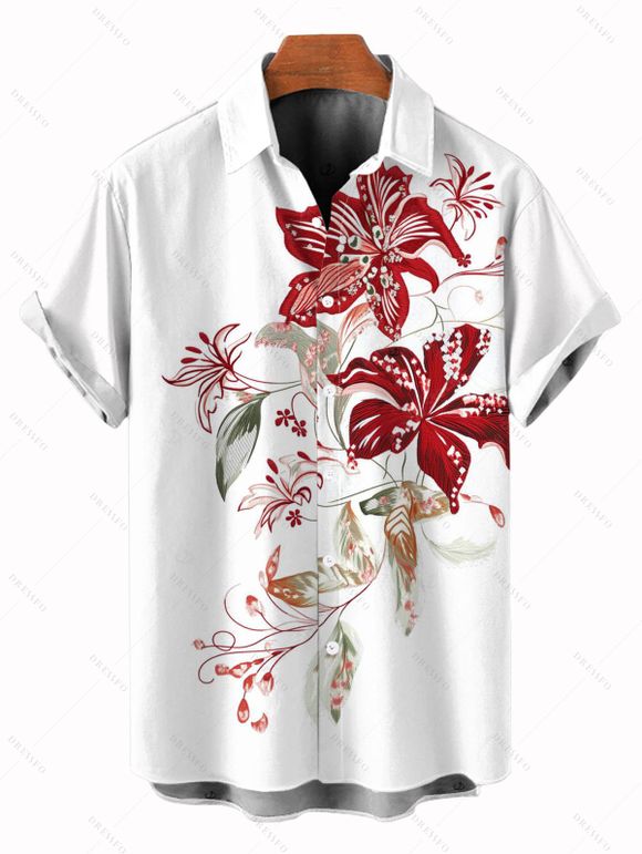 Chemise de vacances pour homme à motif floral et feuilles, boutonnée - Blanc 5XL
