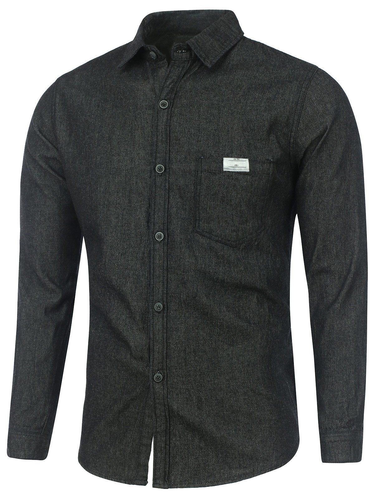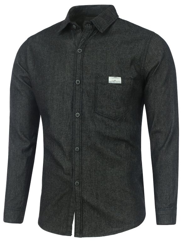 Chemise en denim lavé à manches longues et poches - Noir XL