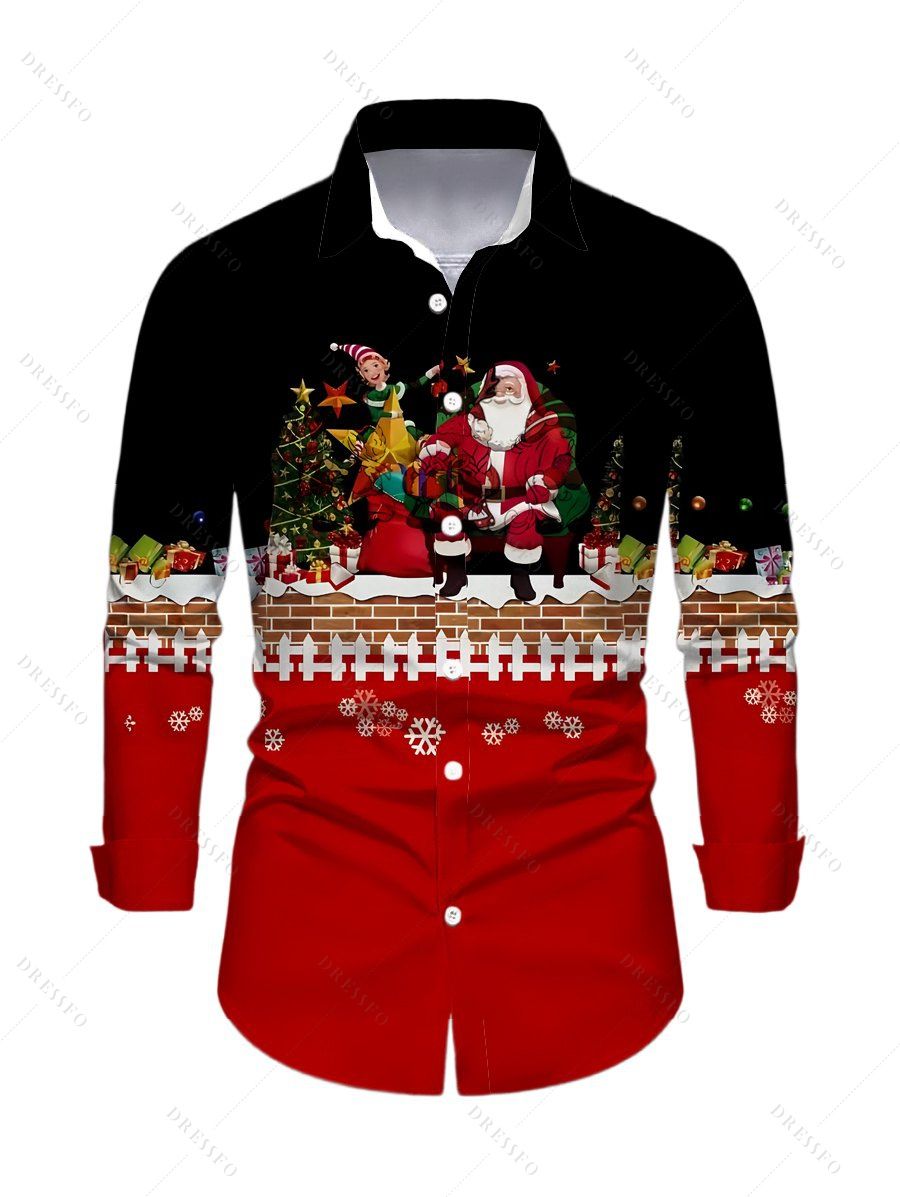 Chemise homme à manches longues, imprimé Père Noël, sapin de Noël et flocons de neige, colorblock