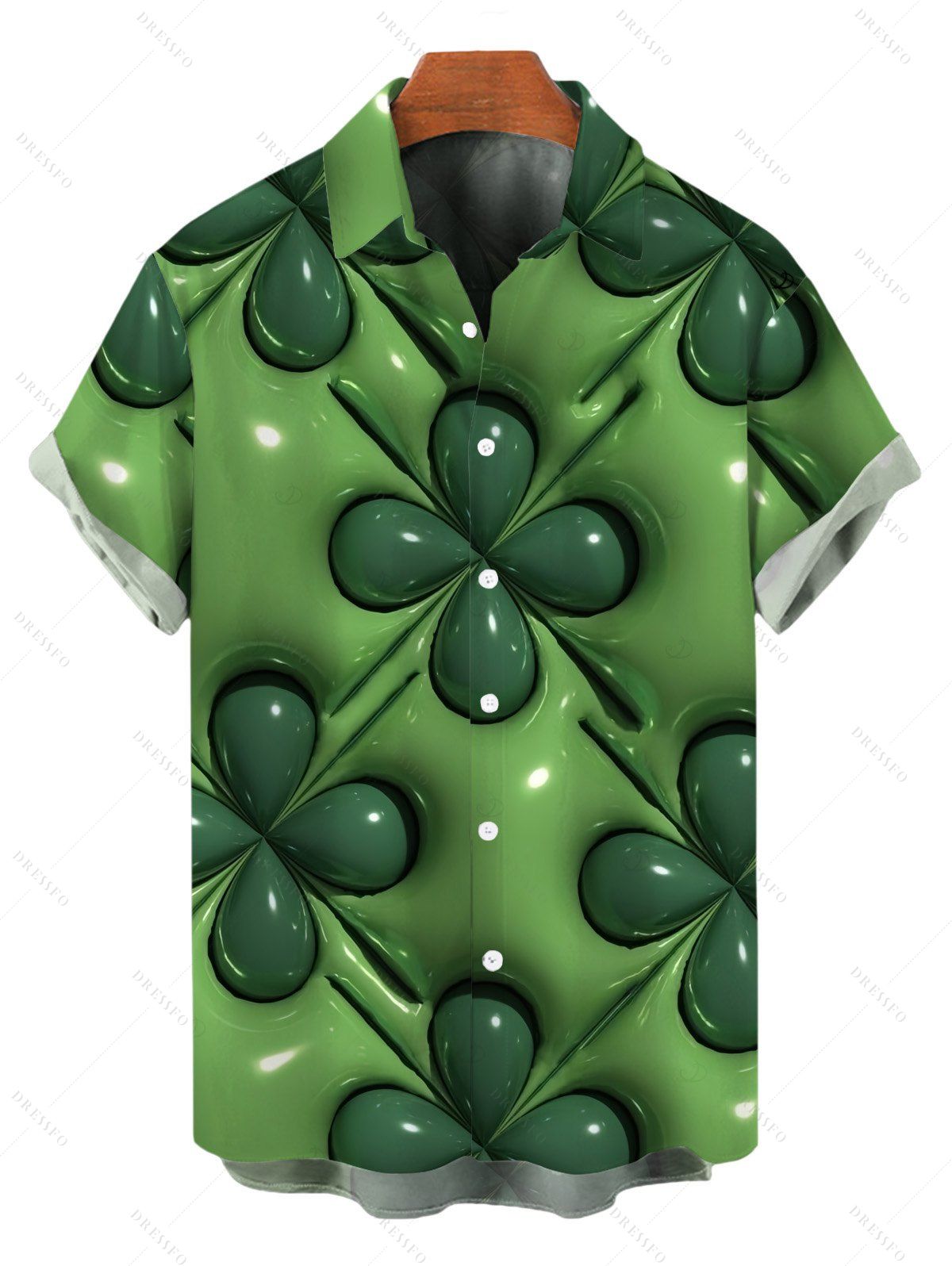 Chemise homme pour la Saint-Patrick, motif trèfle à quatre feuilles en 3D, boutonnée - PLANT GREEN 5XL