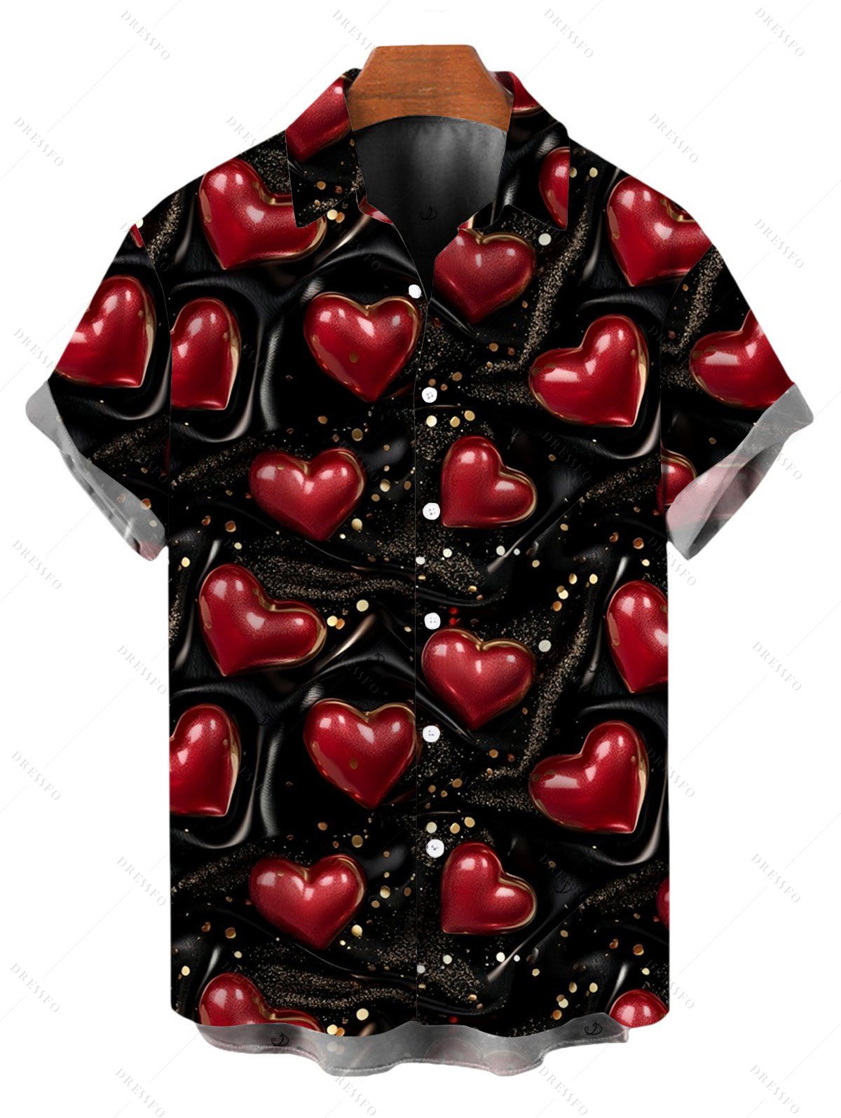 Chemise homme Saint-Valentin à imprimé cœur et sequins, boutonnée - Rouge Vineux 5XL