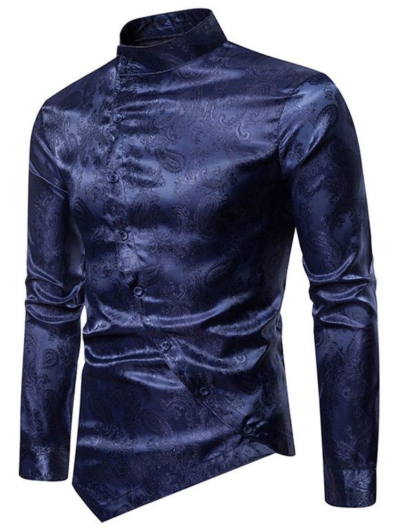 Chemise Motif de Cachemire Imprimé avec Bouton à Ourlet Courbe - Cadetblue M